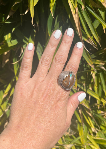 Black Hat Carved Turquoise Eagle Ring